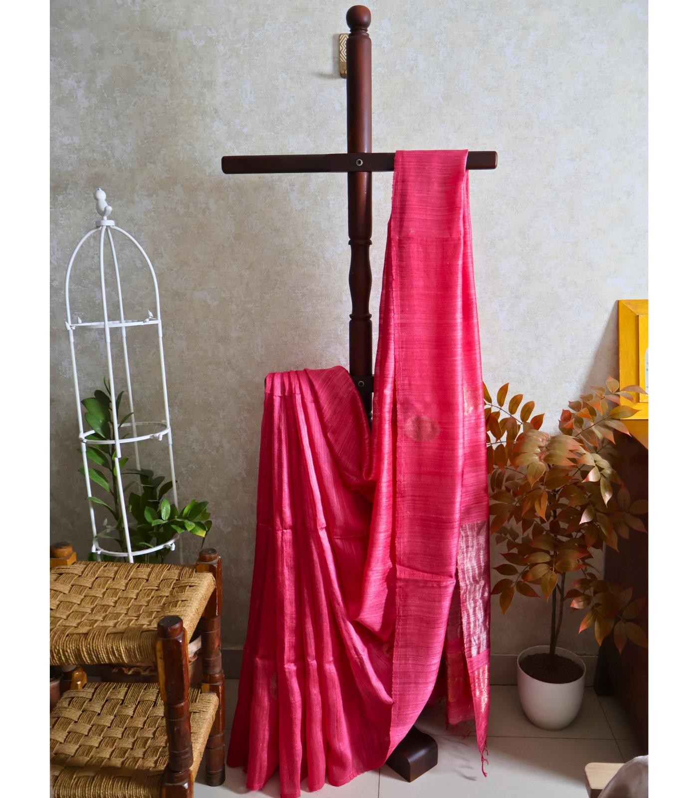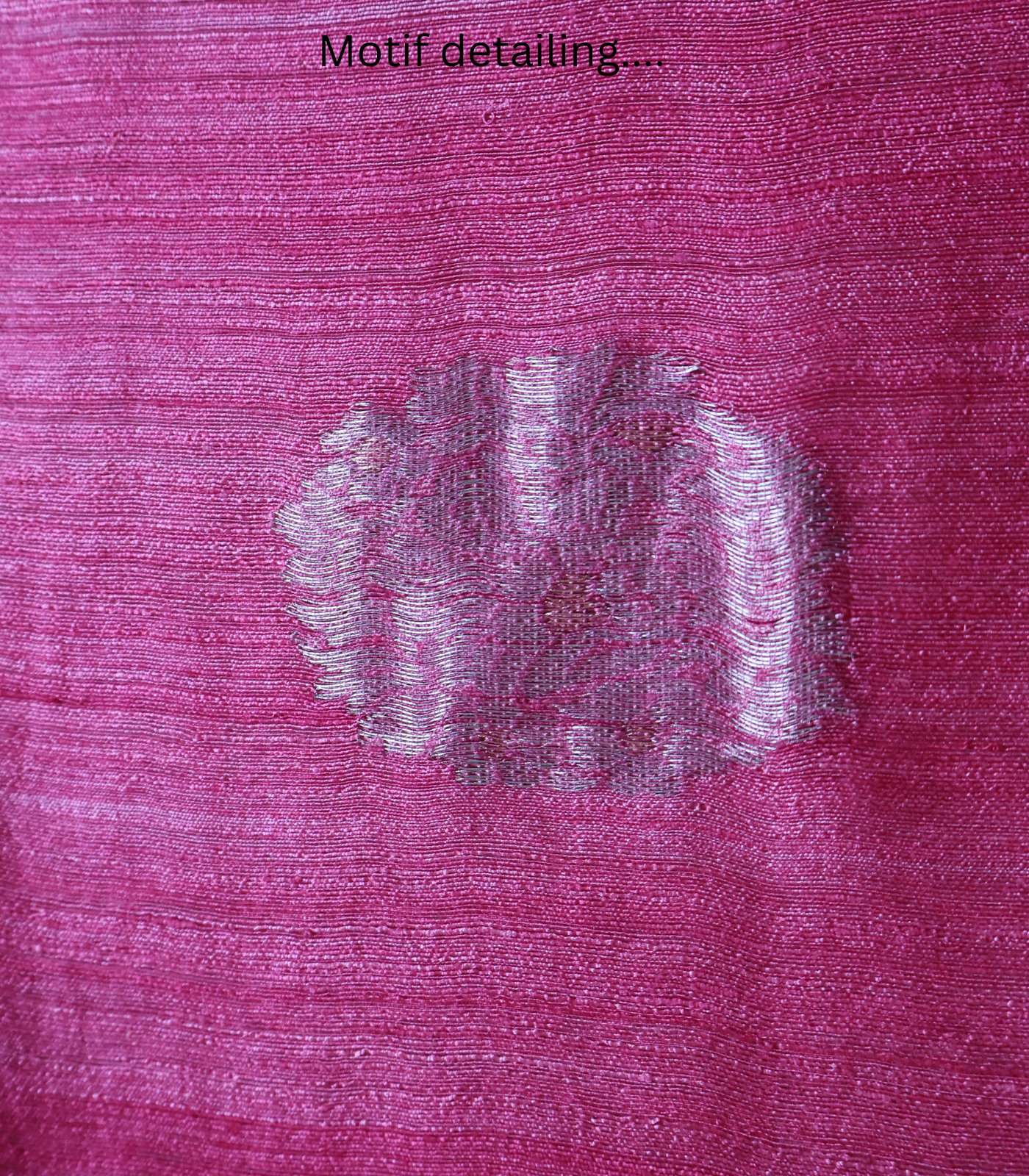 - Base colour: Deep rose pink / rani pink — the dominant shade across the body, with a subtle handloom texture that creates tonal depth