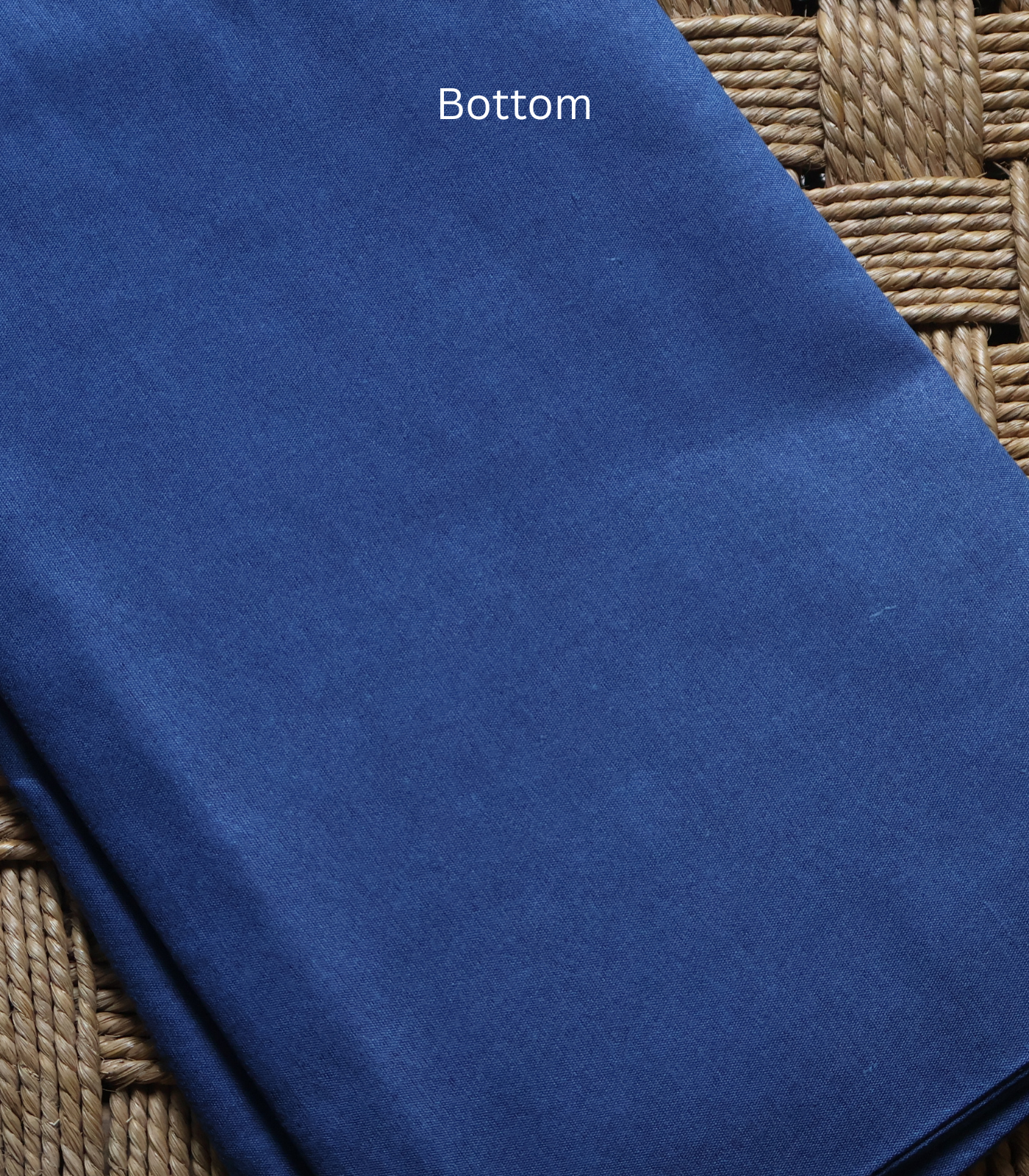 - Bottom Fabric: Muted steel blue / dusty slate blue