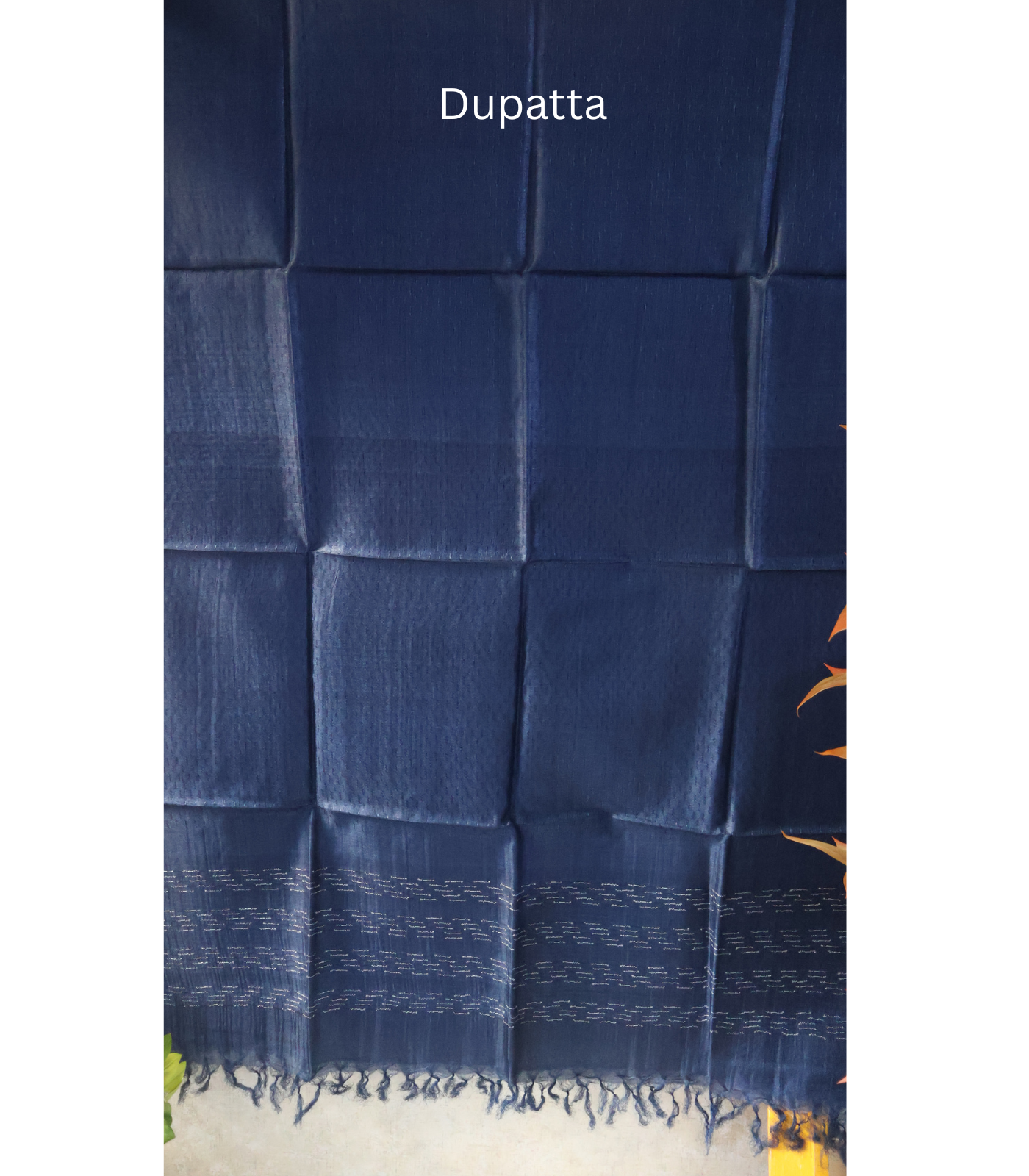 - The bottom fabric comes in a plain, solid dusty blue tone — smooth and minimal, beautifully balancing the textured upper and dupatta
